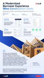 Builders can submit draw requests and upload documentation directly. Borrowers can track project status without calling their lender. Internal teams can manage significantly more volume without adding headcount. Lenders on Built have increased loan management capacity by as much as 2 to 3 times.