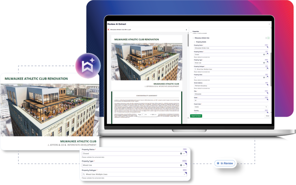 Use AI-powered document scanning to instantly extract deal details, market data, and contacts—streamlining intake and automating your pipeline management process from day one.